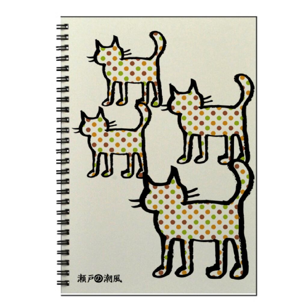 水玉模様の入ったシルエットの猫がデザインされた表紙のリングノートです。