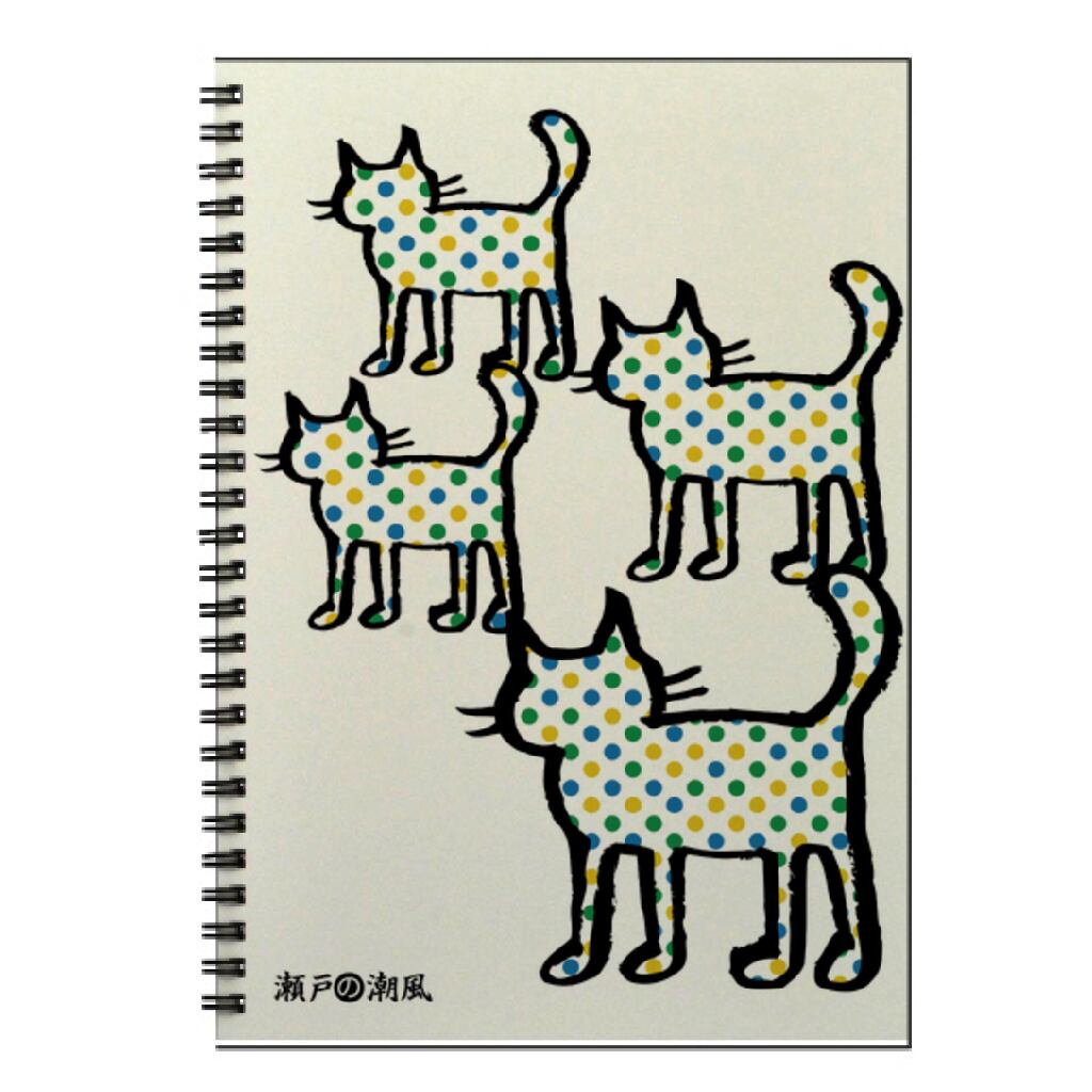 水玉模様の入ったシルエットの猫がデザインされた表紙のリングノートです。