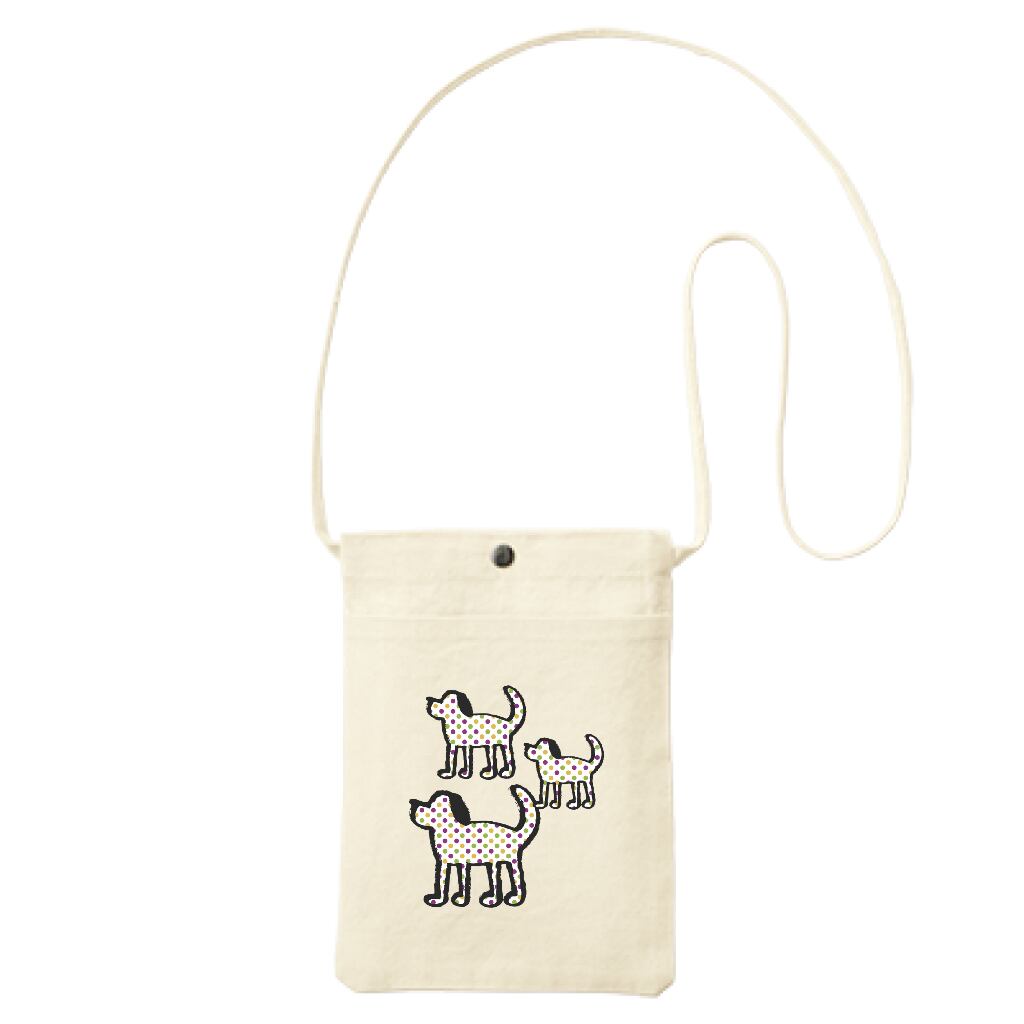 水玉模様の入ったシルエットの犬がデザインされたサコッシュです。