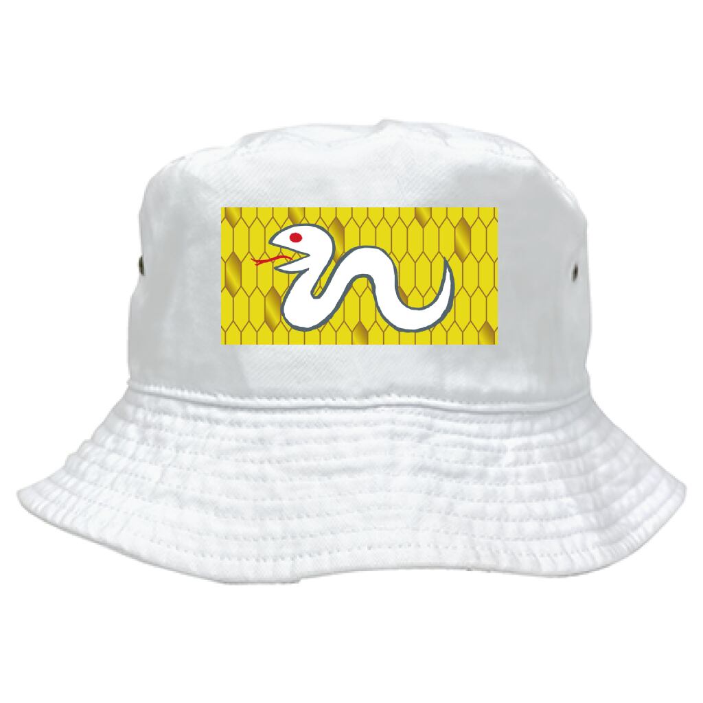縁起物の白蛇イラストをプリントしたバケットハット。