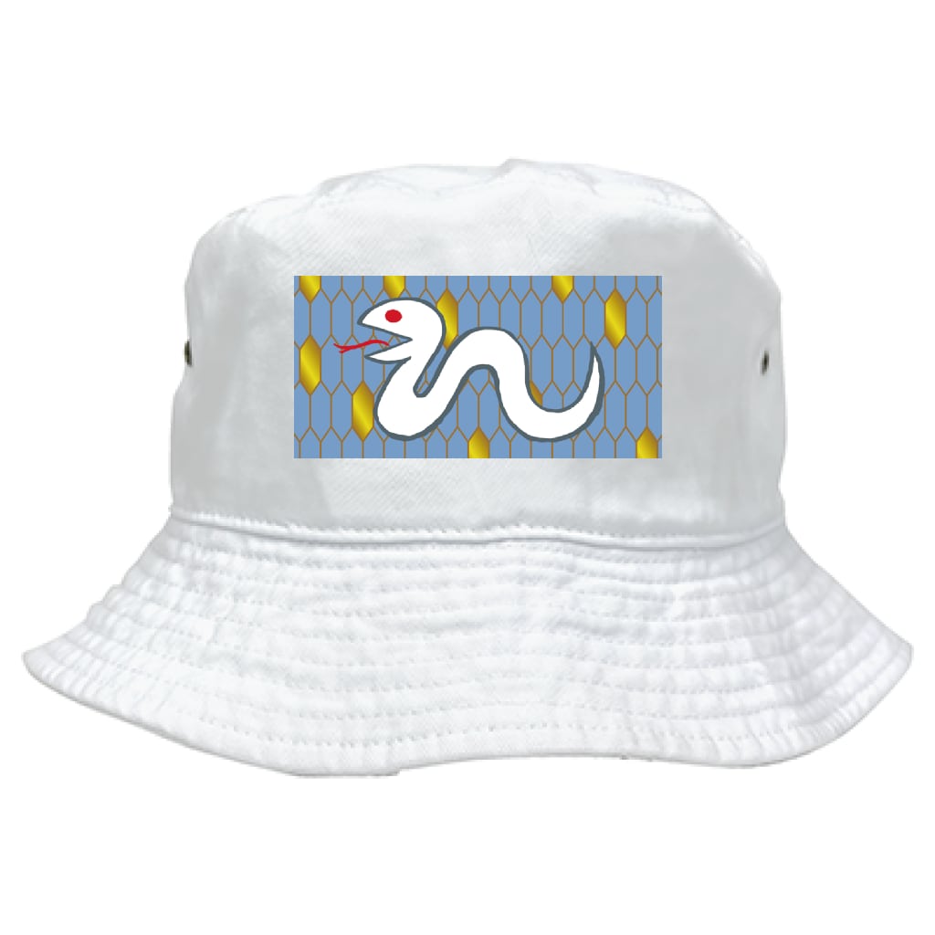 縁起物の白蛇イラストをプリントしたバケットハット。