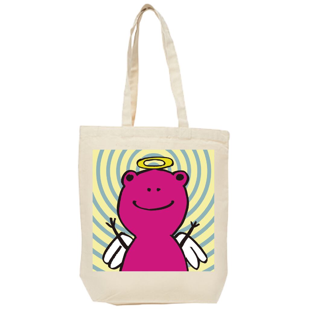 蛙さんが天使になったイラストをプリントしたトートバッグです。