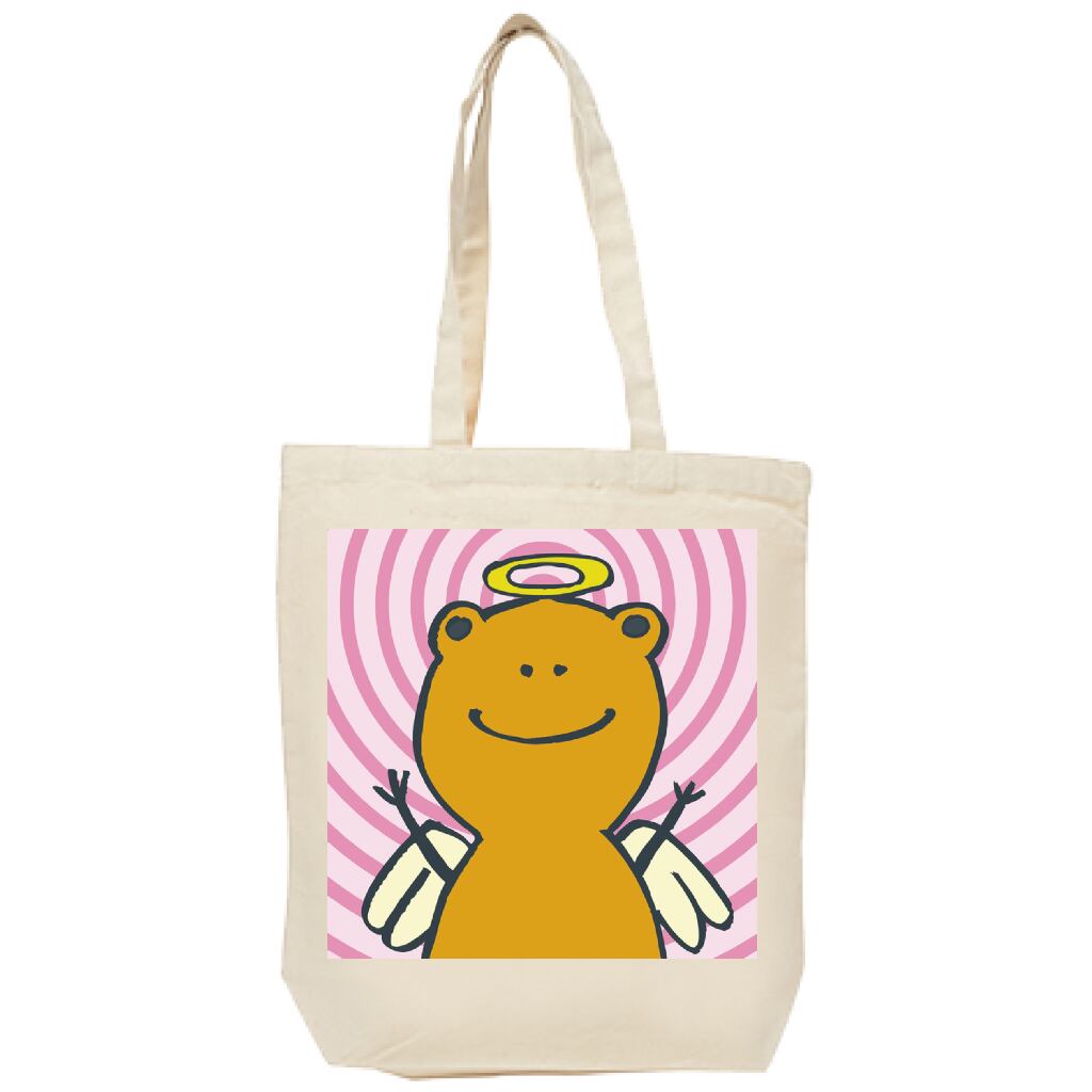 蛙さんが天使になったイラストをプリントしたトートバッグです。