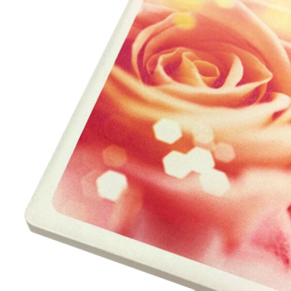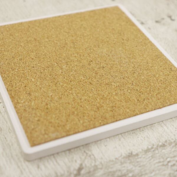 吸水力が自慢の角形白雲石コースターはコップの結露をどんどん吸水してくれるので、パソコンを使うデスク周りでも活躍します。裏面はコルク素材なので机に優しく、滑りにくくなっております。