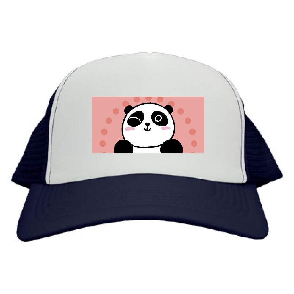 ウインクをしているパンダのイラストでできたメッシュキャップです。