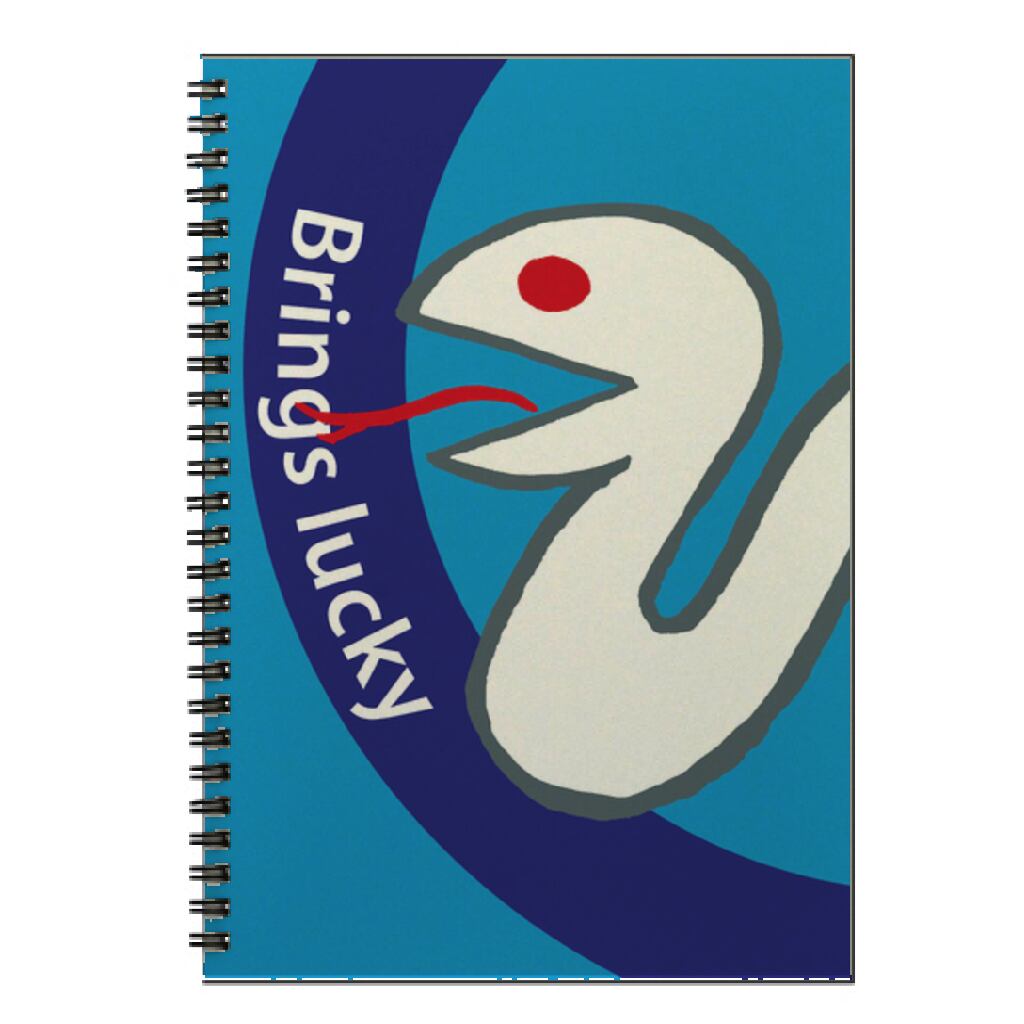 縁起物の白蛇イラストをプリントした表紙のリングノートです。
