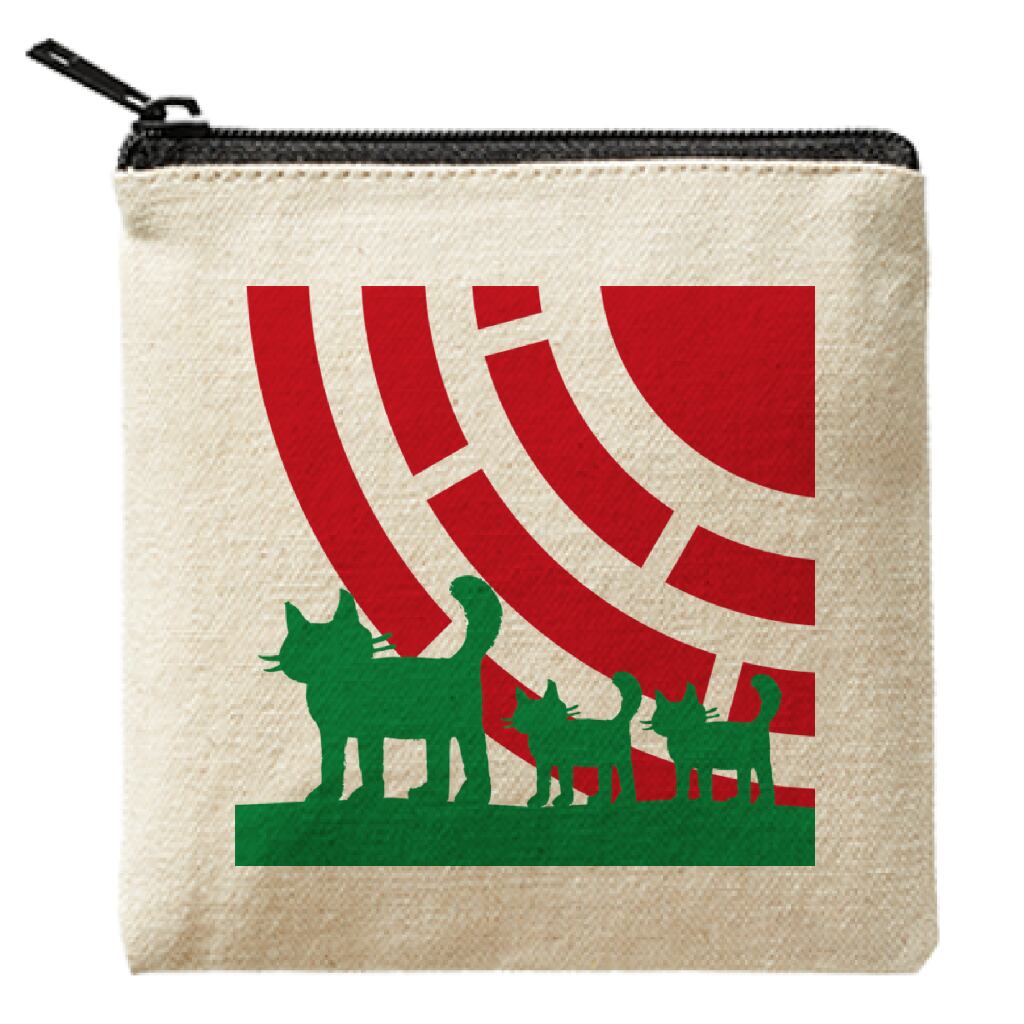 太陽をバックに歩く犬の親子のシルエットを描いたデザインをプリントしたポーチです。