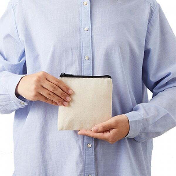 ミニマムサイズがころんとかわいらしい正方形のポーチ。