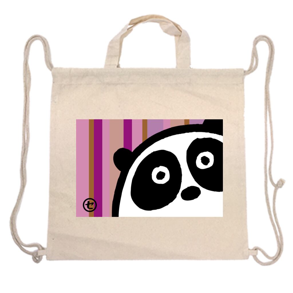 縞のバックからパンダがのぞいているイラスト。