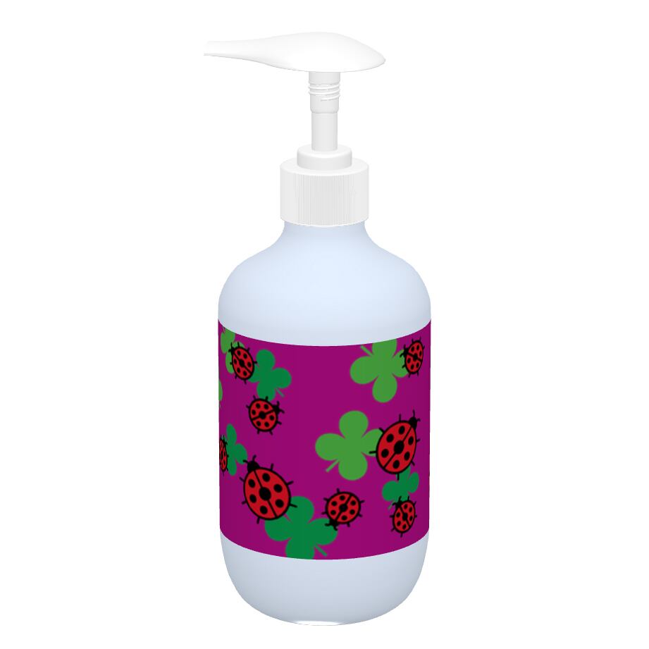 てんとうむしとクローバーのデザイン柄をプリントしたシャンプーボトルです。