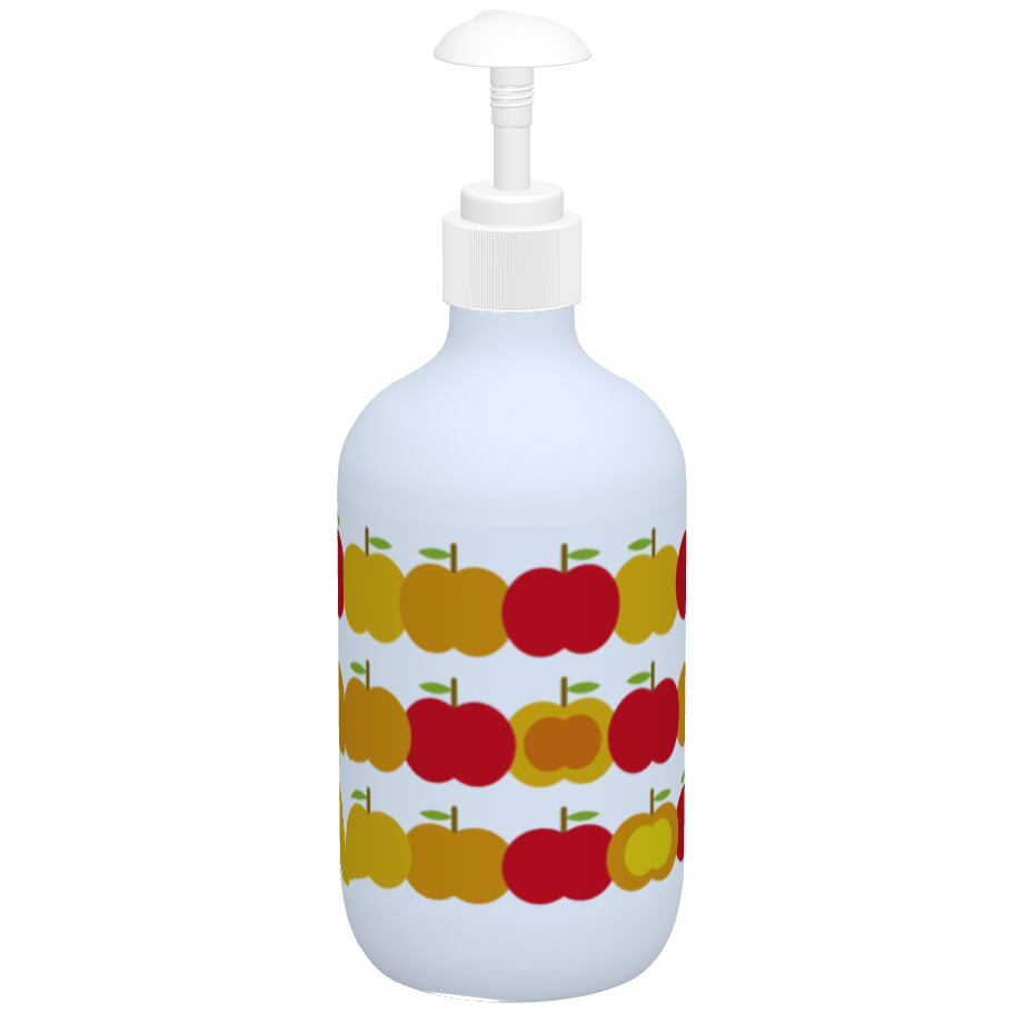 りんごのデザインをプリントしたシャンプーボトルです。