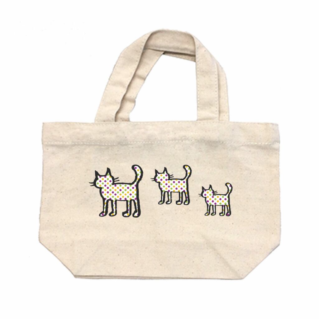 水玉模様の入ったシルエットの猫がデザインされたトートバッグです。